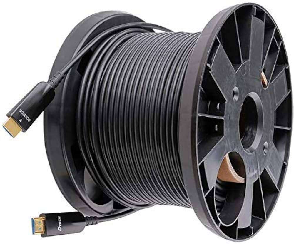 The DTECH HDMI to HDMI Cable 100m Model: DT-HF021 (also referred to as the DT-HF2100) is a fiber optic cable designed for high-speed, long-distance audiovisual transmission without signal loss, supporting 4K resolution at 60Hz. It uses a hybrid fiber optic and copper core structure and does not require an external power source.