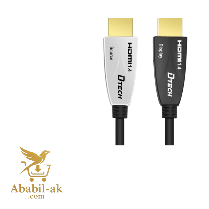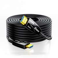 The DTECH HDMI TO HDMI CABLE 50M MODEL: DT-HF562 is a fiber optic cable that supports 4K resolution at 30Hz with a data rate of 10.2Gbps over its 50-meter length. It is designed for long-distance audio-visual signal transmission without signal degradation or electromagnetic interference (EMI).
