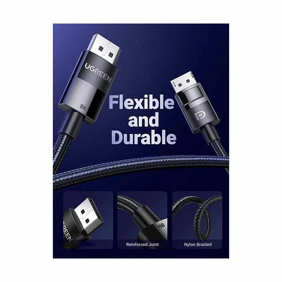 UGREEN DP114 (80394) DP Male to Male Cable – 5M supports transmission speeds up to 32.4Gbps and resolutions up to 7680×4320. Enjoy refresh rates up to 8K@60Hz, 4K@144Hz, and 2K@165Hz with this VESA Standard-compliant cable. Backward compatible with DisplayPort 1.3/1.2, it supports Dynamic HDR and HDCP 2.2 for superior video quality.